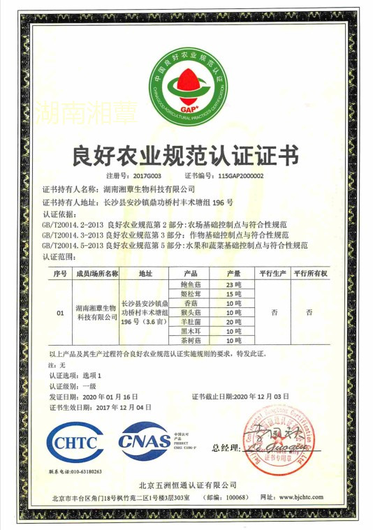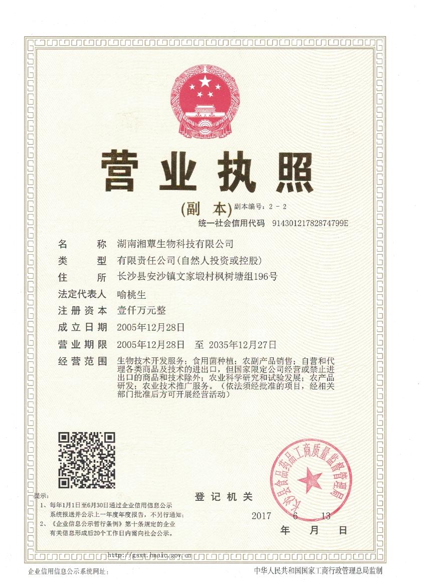 湖南湘蕈生物科技有限公司是长沙县出口食品农产品质量安全示范区重点企业。